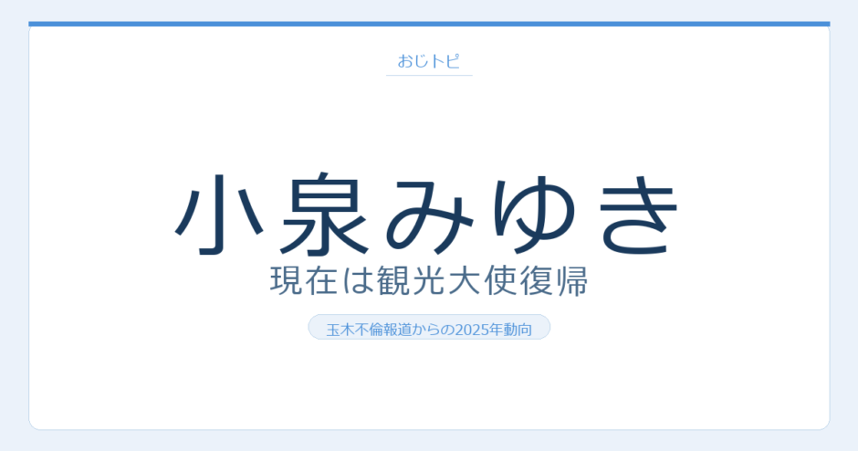 元グラビアアイドルでレースクイーンとしても活躍した小泉みゆきさんは、2024年11月に国民民主党・玉木雄一郎代表との不倫報道でメディアの表舞台から姿を消した人物です。