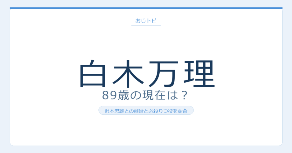 ネット検索では「白木万理 夫 死去」「沢本忠雄 白木万理」の組み合わせで情報をたぐる人が多く、沢本忠雄さんの訃報が「白木万理さん本人が亡くなった」と誤解されるケースも散見されます。ただし、亡くなったのは元夫の沢本忠雄さんであり、白木万理さんは別人です。混同しないよう注意が必要ですね。